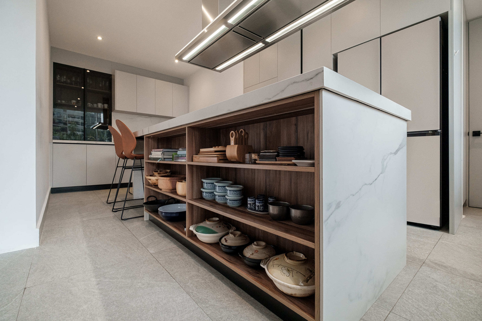 Cada detalle fue pensado para facilitar las actividades cotidianas, desde la ubicación estratégica de los electrodomésticos hasta la disposición ergonómica de los espacios de trabajo. Además, incluimos iluminación LED en áreas clave para mejorar la visibilidad y crear un ambiente acogedor.