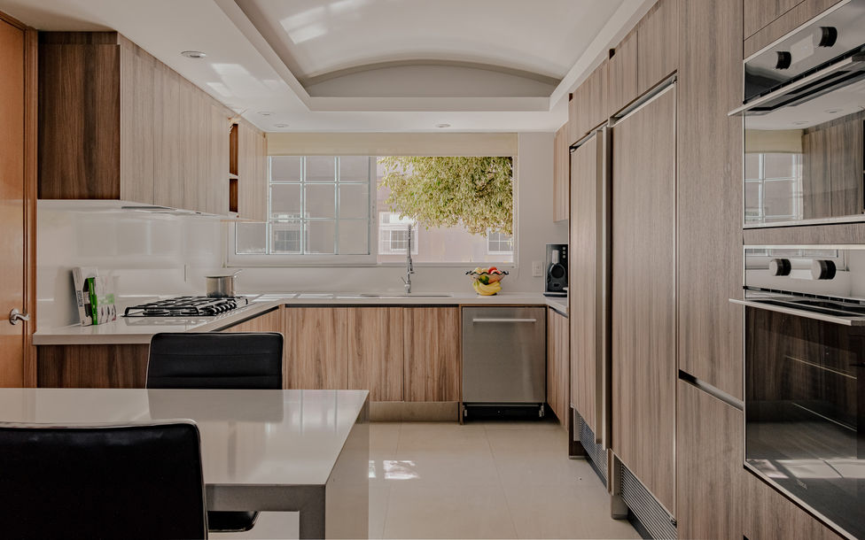 Llevamos a cabo la remodelación completa de una cocina que databa de los años 90. La cocina original tenía cajones y bisagras que estaban colgando y necesitaba una actualización completa. Para llevar a cabo la remodelación, se renovó todo: el piso, las paredes, las salidas de servicios, los plafones, los muebles de cocina y las cubiertas.